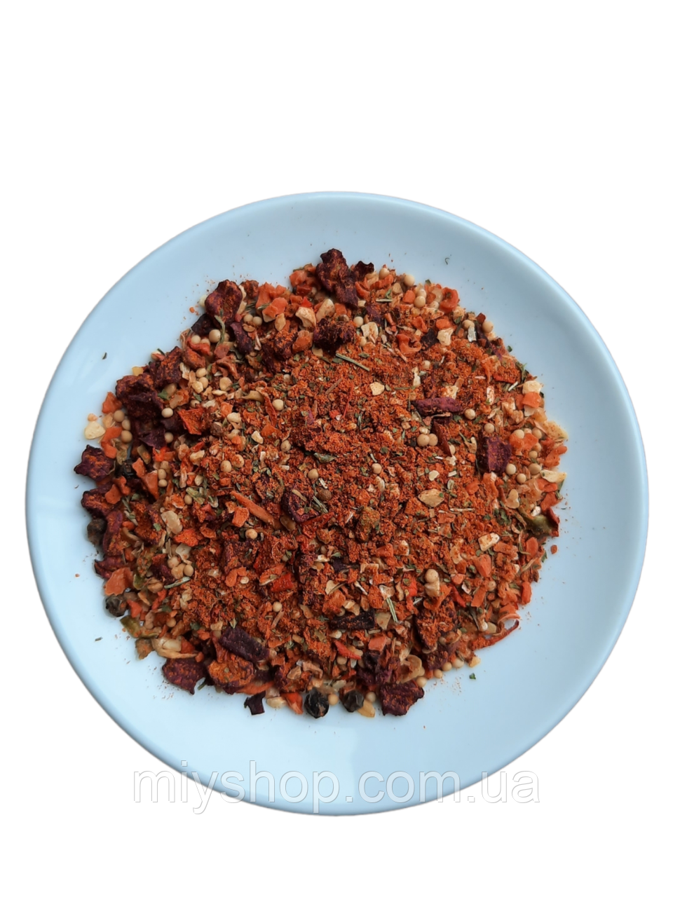 Склад: буряк, часник, перець червоний солодкий, перець зелений солодкий, морква, цибуля, перець червоний гострий, гірчиця, коріандр, перець чорний, петрушка, кріп