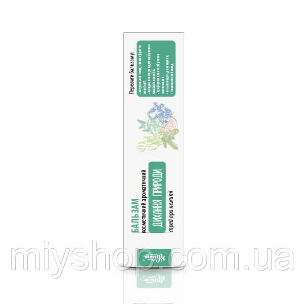 Бальзам косметичний ароматичний профілактичний для лікування нежиті та гаймориту, профілактики ГРВІ та грипу в період епідемій, поліпшення стану порожнини носа, усунення наслідків та попередження проявів симптомів застудних захворювань. Швидко знімає закладеність носа, усуває неприємні симптоми нежиті, запобігає герпесу. Ефірні олії у складі бальзаму мають місцеву антисептичну і антибактеріальну дію, зменшують неприємні відчуття і знижують ризик виникнення хронічних ускладнень завдяки загальній активізації імунітету.